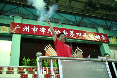 在庄严的国歌中,五星红旗冉冉升起,广州市律师协会第四届运动会正式拉开帷幕。常务理事卢坚代表我会做了热情洋溢的开幕词,向参会的领导嘉宾和运动员、裁判员表示欢迎和感谢,勉励各运动员努力拼搏,发扬“更高、更快、更强”的奥林匹克精神争创佳绩。接着运动员代表广大所律师万晶和裁判代表先后登台宣誓。最后,由市司法局卢铁峰局长亲手扣响了本届运动会的第一声发令枪,运动会正式开始紧张有序的角逐。